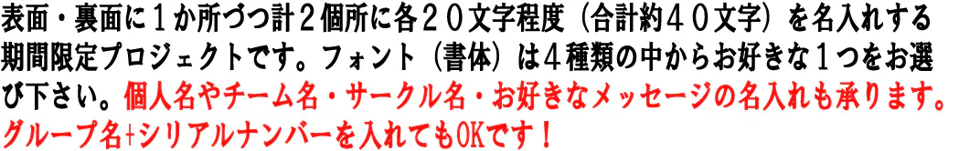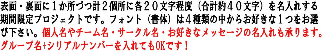 ⑤友人やサークルメンバーで色違いを購入したいのですが、サークル名などの名称も名入れすることは金額的に難しいのでしょうか?