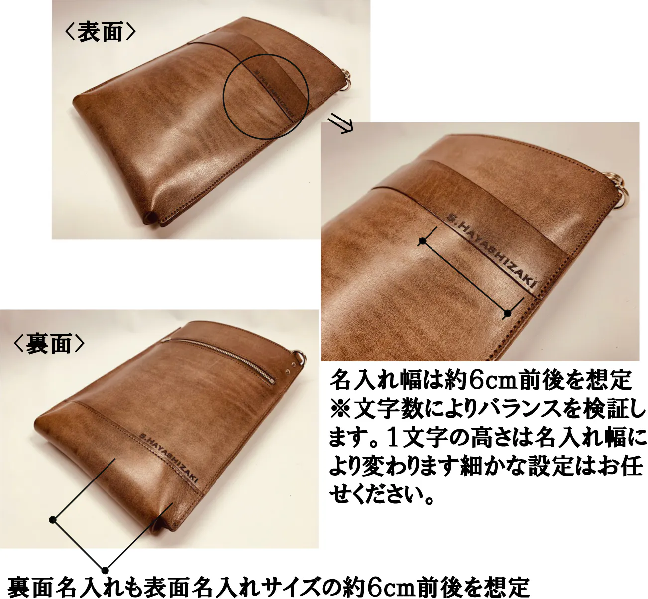 ※イメージ写真のユーティリティーポーチ名入れ幅は、3.5cmで彫刻しておりますが文字数によりバランスを見させていただきます。細かな仕様のご指定は出来ませんので予めご了承ください。
