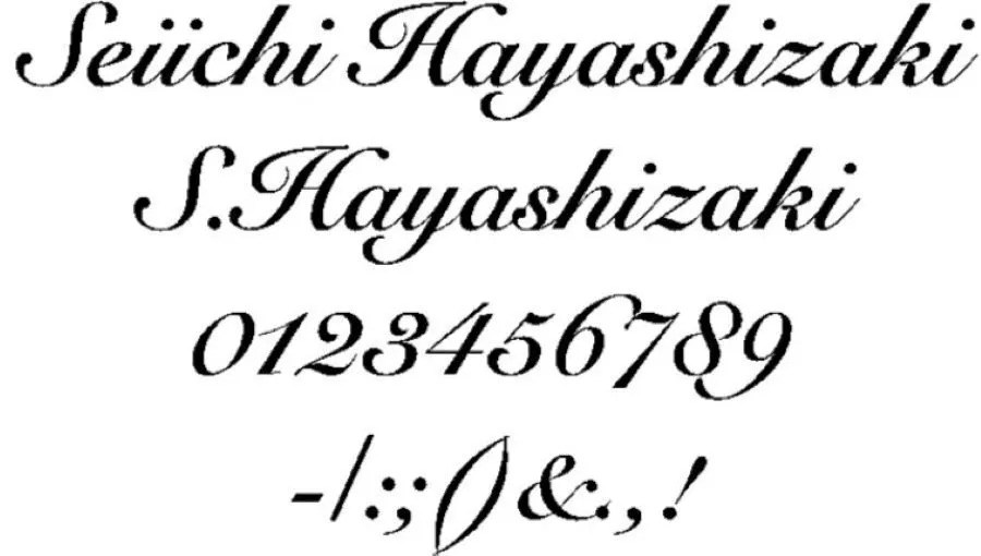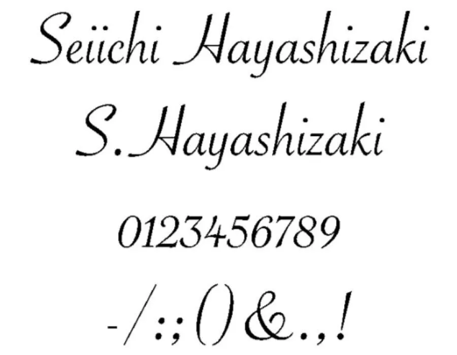 b)筆記体調アルファベット(B)を使用した名入れイメージ