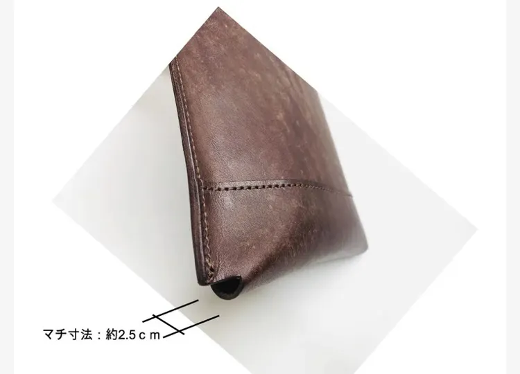 ※各パーツ裁断後に表面ワックスを柔らかな布である程度艶が出るまで磨きを掛けで縫製を行っております。お手元に到着しましたらお好みの艶が出るように磨いてもよし、そのまま経年変化を待ちながら使用するのも楽しみの1つとなります。