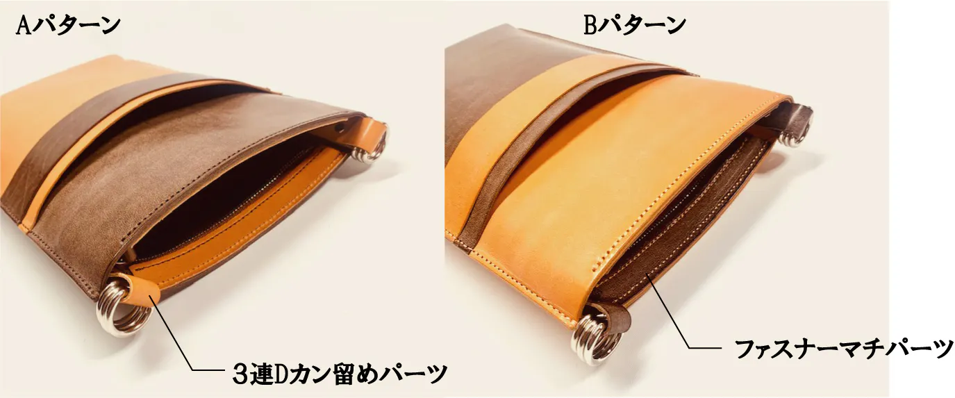 ポーチ本体のコンビネーションカラーと、オプションパーツのカラーでバイカラーのコーディネートも楽しめます。