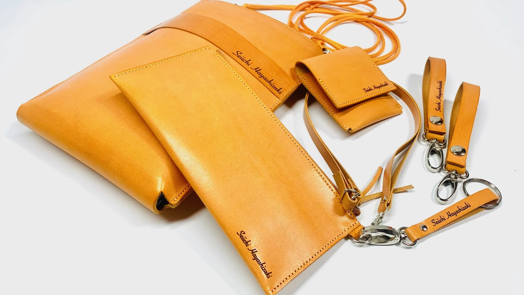 【フルオプション割】Shizaスマホポーチ本体とオプション全ての完成品1セット 〈名入れ可能アイテム〉●スマホポーチ本体 2箇所(表面裏面フルネーム名入れ1箇所づつ)●ユーティリティーポーチ 1個所●コインケース 1個所●ベルトループ 1個所●キーリング 1個所 合計6個所に名入れを行う感謝リターンになります。