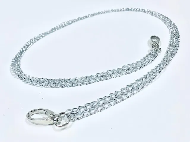 両端にナスカンが付いたアルミ製のショルダーベルトです。全長約1m(ナスカン含む)アルミ製のチェーンは、スチール製のチェーン比べ強度が落ちるため2重仕様にしております。2重でも軽量なので男女を問わずご使用になれます。ちょっとした会食やパーティーなど服装に合わせてコーディネートしてみてはいかがでしょうか?