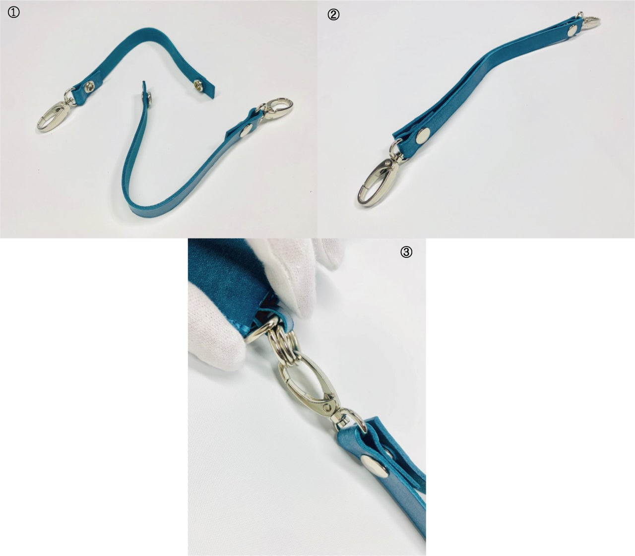 ベルトループを交互に合わせホックを留めれば1本の持ち手としてお使いになれます