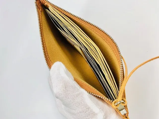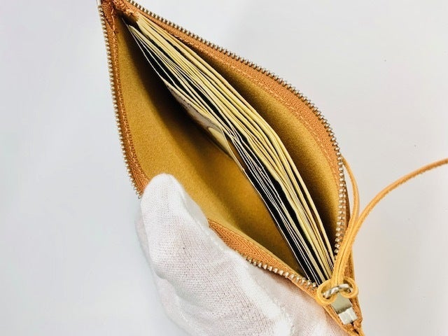 ・共革コインケース(小銭はもちろん、外出用のお薬など小さめの物を収納するのに便利なアイテム。ポーチ本体裏面のファスナーポケットにも楽々入るちょうど良いサイズ感)
