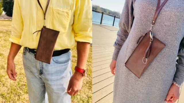 ・共革ネックストラップ(ユーティリティーポーチを首から提げられる(サイズ調整使用の便利なロングストラップ)