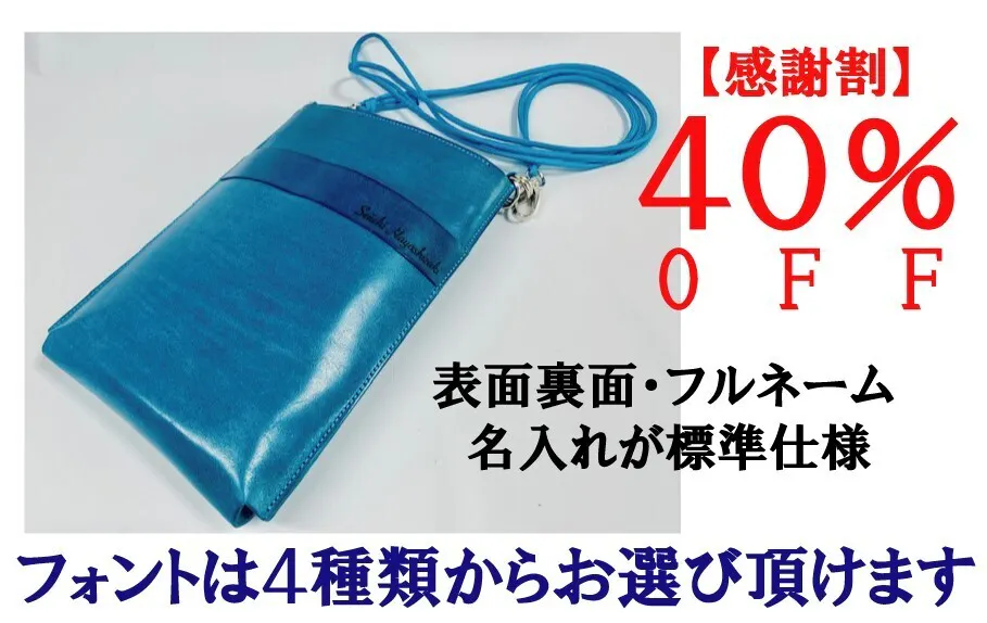 ■【感謝割】Shizaスマホポーチの完成品1個 表面裏面フルネーム名入れ1箇所づつ