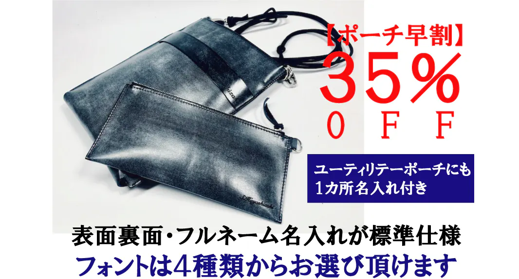 【ポーチセット割】 Shiza-スマホポーチ&ミニポーチ(ユーティリティーポーチ)1セット(Shiza-スマホポーチ本体の表面裏面フルネーム名入れ1箇所づつ)とユーティリティーポーチにもフルネーム名入れ1箇所付き お好きなカラー本体1点(2種類のショルダーベルト付き)とお好きなカラーでユーティリティーポーチ1点 ■一般販売価格 スマポポーチ¥19,500(税込・送料込)ユーティリティーポーチ¥2,800(税込・送料込)合計¥22,300のところご支援様限定35%OFFの合計¥13,400(税込・送料込)でご予約承ります。 ■本体スマホポーチ:6色の中から1点をお選びください。 ■ユーティリティーポーチ:6色の中から1点をお選びください。 ※名入れフォントは、4種類からお選び頂けます。お届け予定 :2023年 11月 下旬までに発送