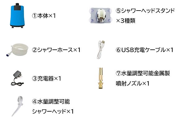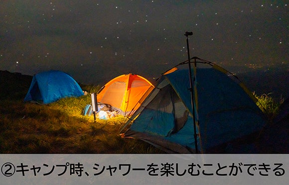 シャワーの水ポンプとして使う場合、吸盤式、粘着式、ネジ式の3種類のシャワーヘッドスタンドが付き、アウトドアでも家でも面倒な取付工事が不要で好きなところに設置できます。