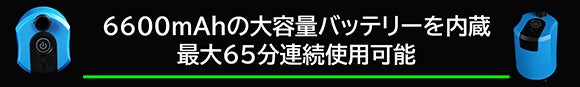 ■6600mAhの大容量バッテリーを内蔵、最大65分連続使用可能
