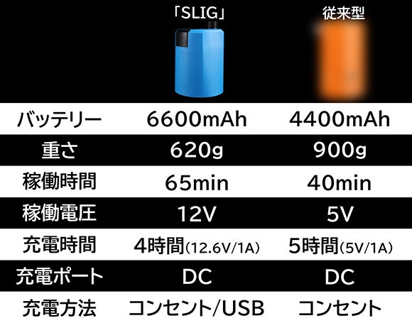 「SLIG」はコンセントあるいはUSB充電ケーブルで直接に充電できます。また、パソコンやモバイルバッテリーなどからの給電も可能です。