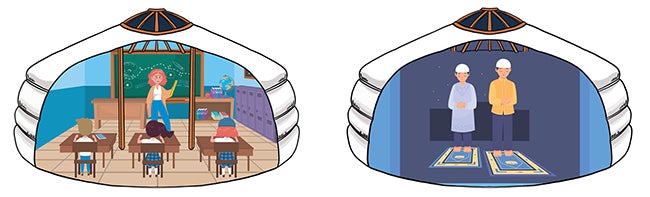 学校や遊び場、また女性のかたなどの着替えの場所やお祈りの場所、集