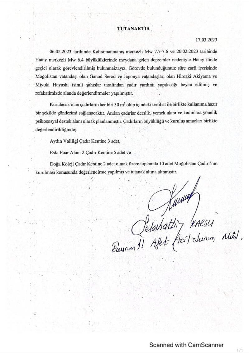 1.10棟のゲルをトルコに寄付・設置します。被害が酷かったアンタキヤの