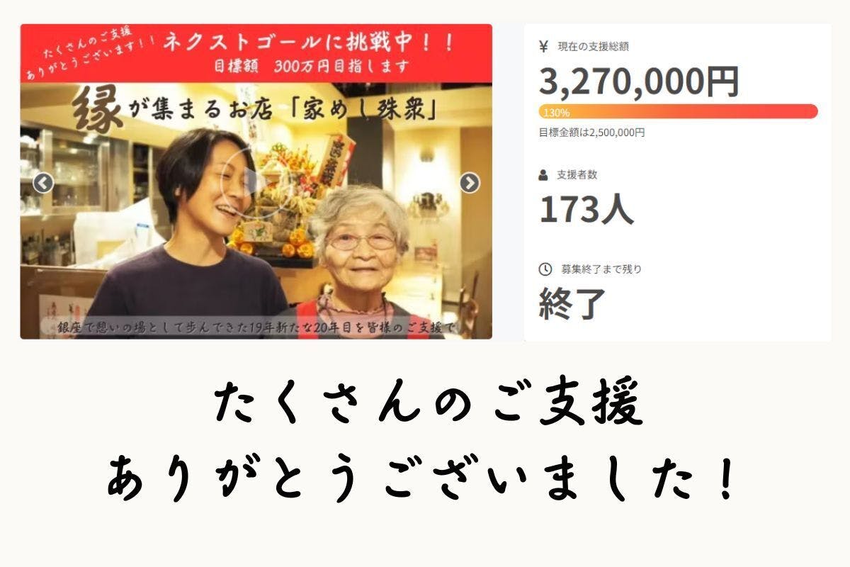 またご支援だけでなく、応援のメッセージやSNS上でシェアなどのご支援を頂いた方々にもお礼を申し上げます。