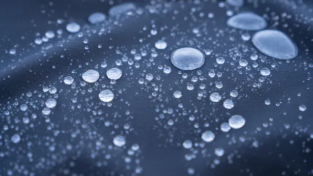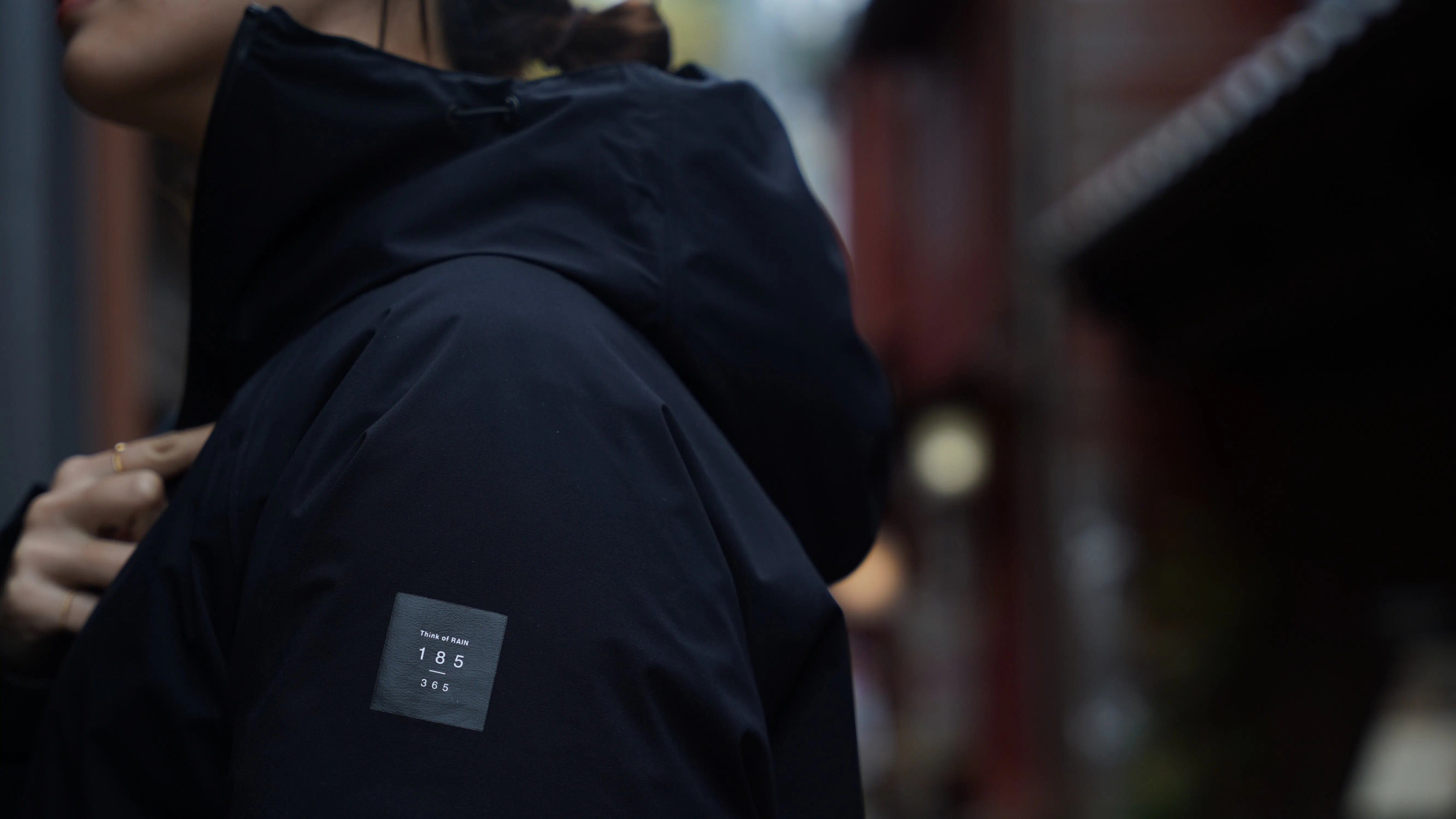 限りなく薄く延ばされた防水透湿膜はわずか15ミクロンの極薄メンブレンを使用、豪雨に耐える高い耐水圧30,000mm以上※¹を有し、同時に内側の湿気を外側に排出する優れた透湿性30,000g/㎡/24hr以上※²と、最先端の高機能レインウェアにも匹敵するスペックを備えています。