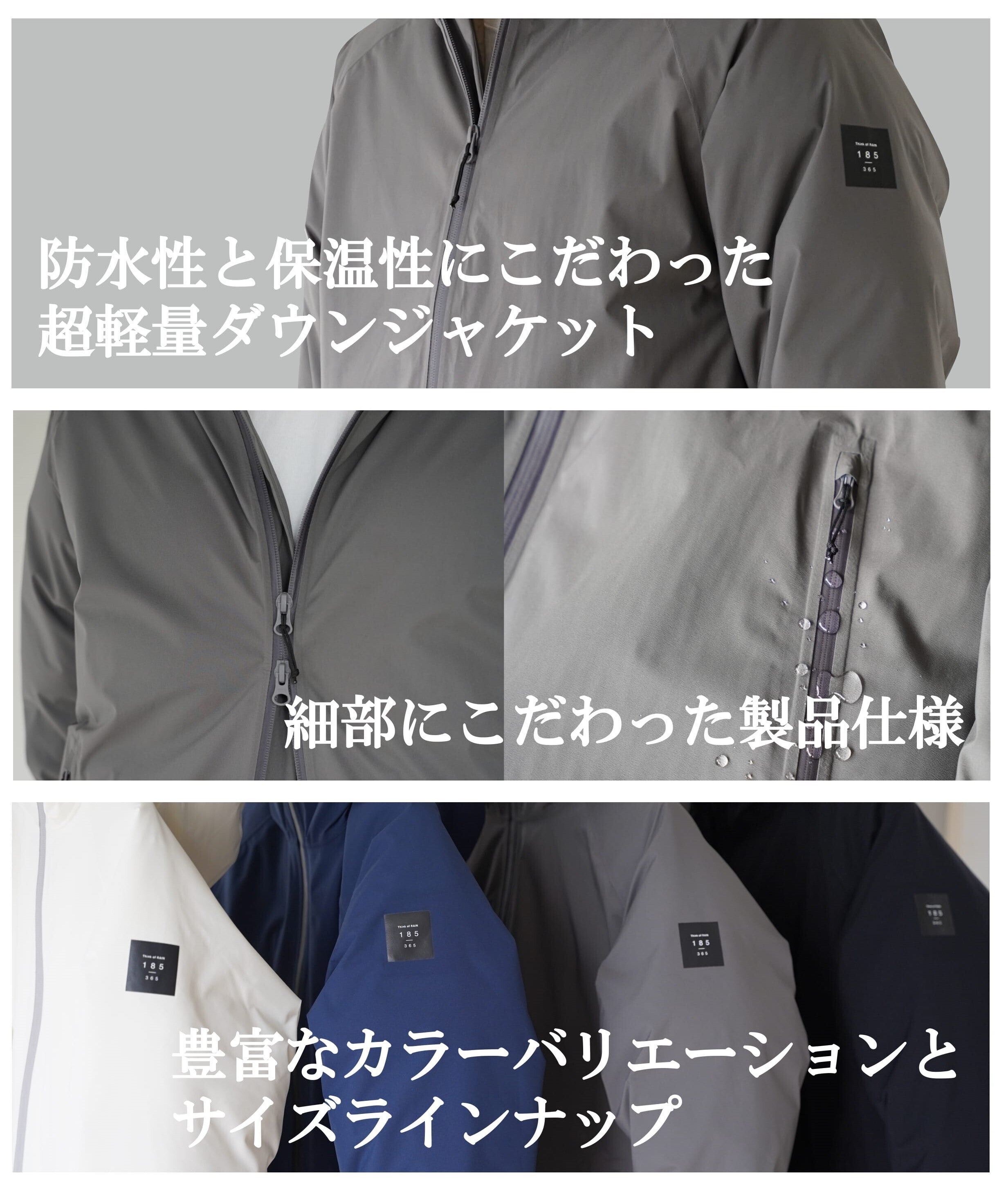 日本の冬に欠かせないダウンジャケットですが、「お手頃な価格でレインウェアのように防水性にこだわったダウンウェアが無い!」そんな思いから今回防水性にとことんこだわった究極のダウンジャケットを開発いたしました!