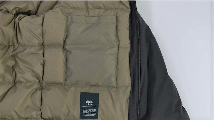 世界でも有数のダウンサプライヤー『ALLIED FEATHER +DOWN』の750 FILL POWER WHITE DUCK DOWN90%を約110g (Lサイズ)使用しています。FILL POWER (フィルパワー) とはDOWNのかさ高を示す単位で数値が大きいほど多くの空気を含むことが出来るため、保温性が高いと言えます。一般的には600 FILL POWER 前後を使用している製品が多い中、750 FILL POWER と保温性に優れたダウンを使用しています。