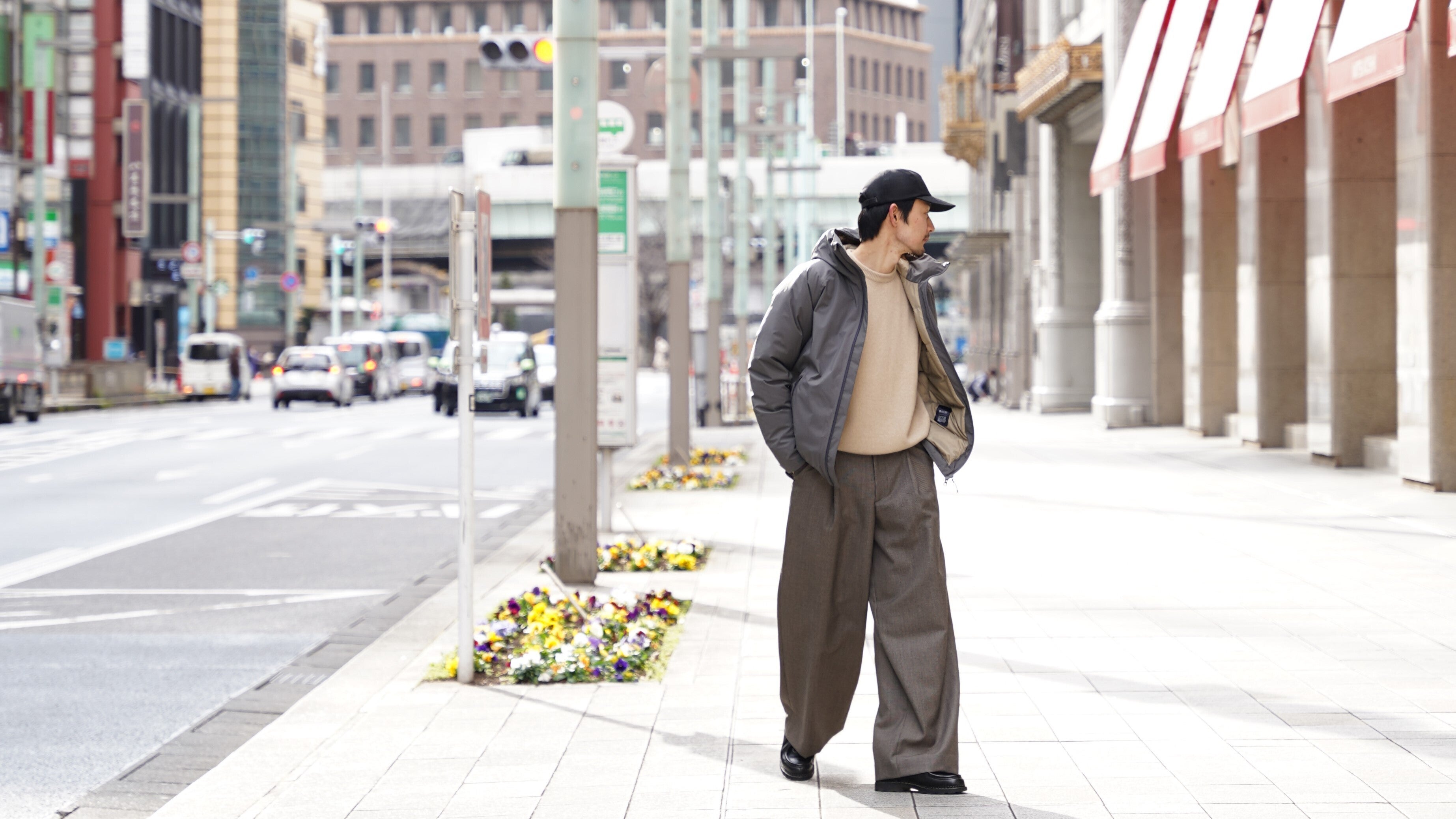 ※モデル身長184cm:ダウンジャケット チャコール Lサイズ着用※モデル身長184cm:ダウンジャケット チャコール Lサイズ着用