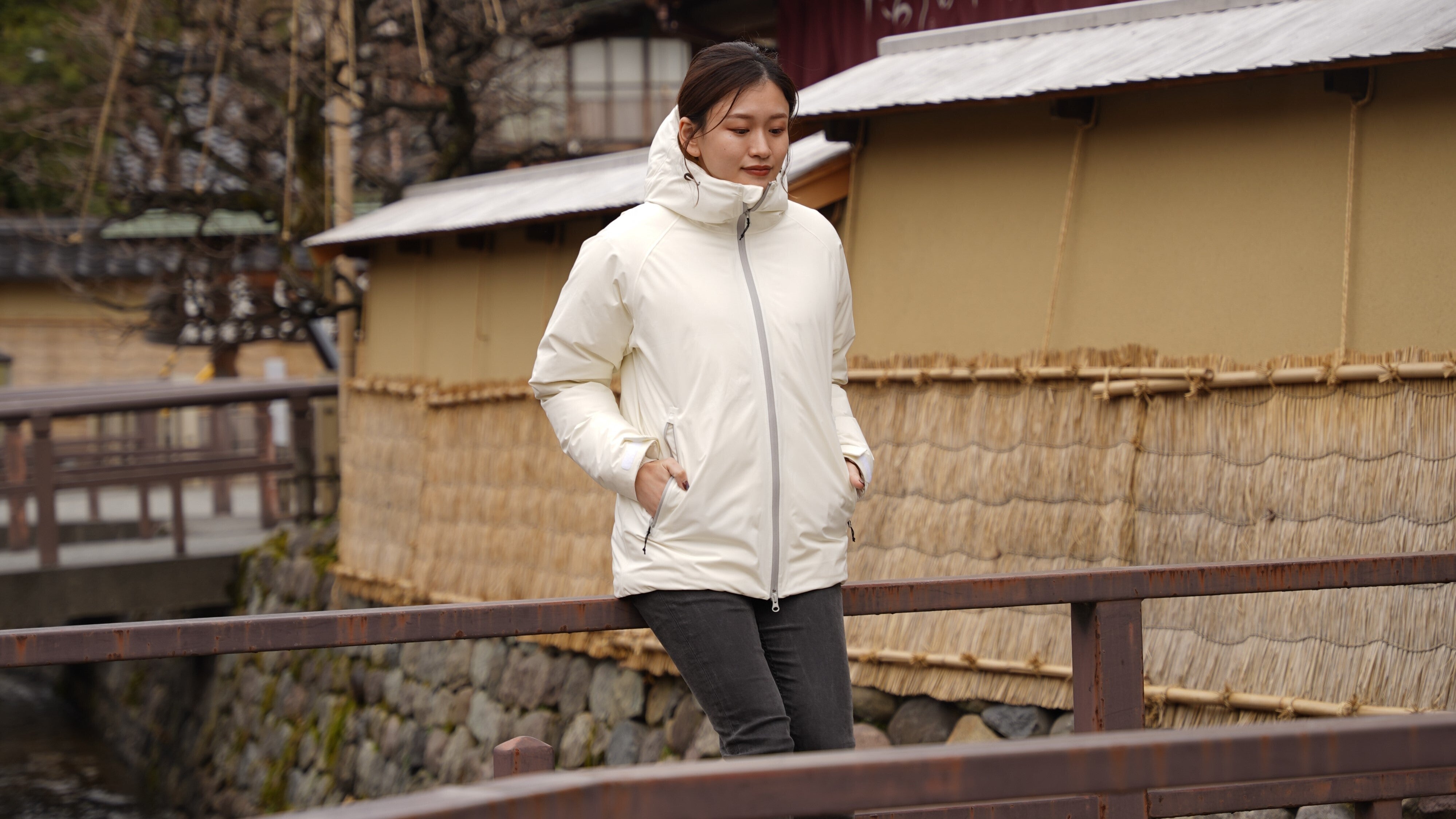 Mサイズのダウンジャケットで約500gと防水ダウンジャケットとしては驚くほど軽量かつ、しなやかで着用時のストレスを大きく軽減してくれます。