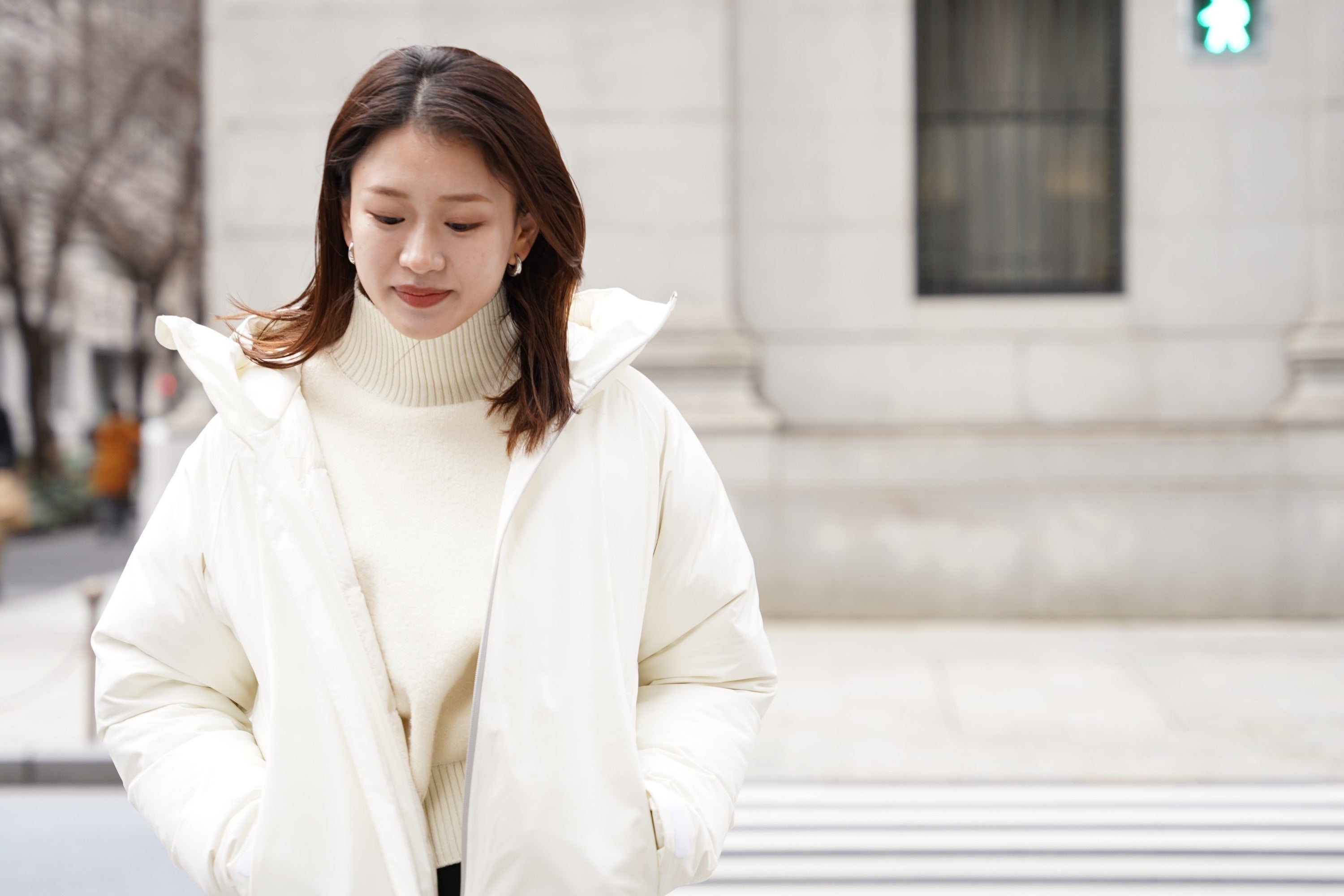 ※ダウンジャケット オフホワイト Sサイズ着用:モデル身長165cm