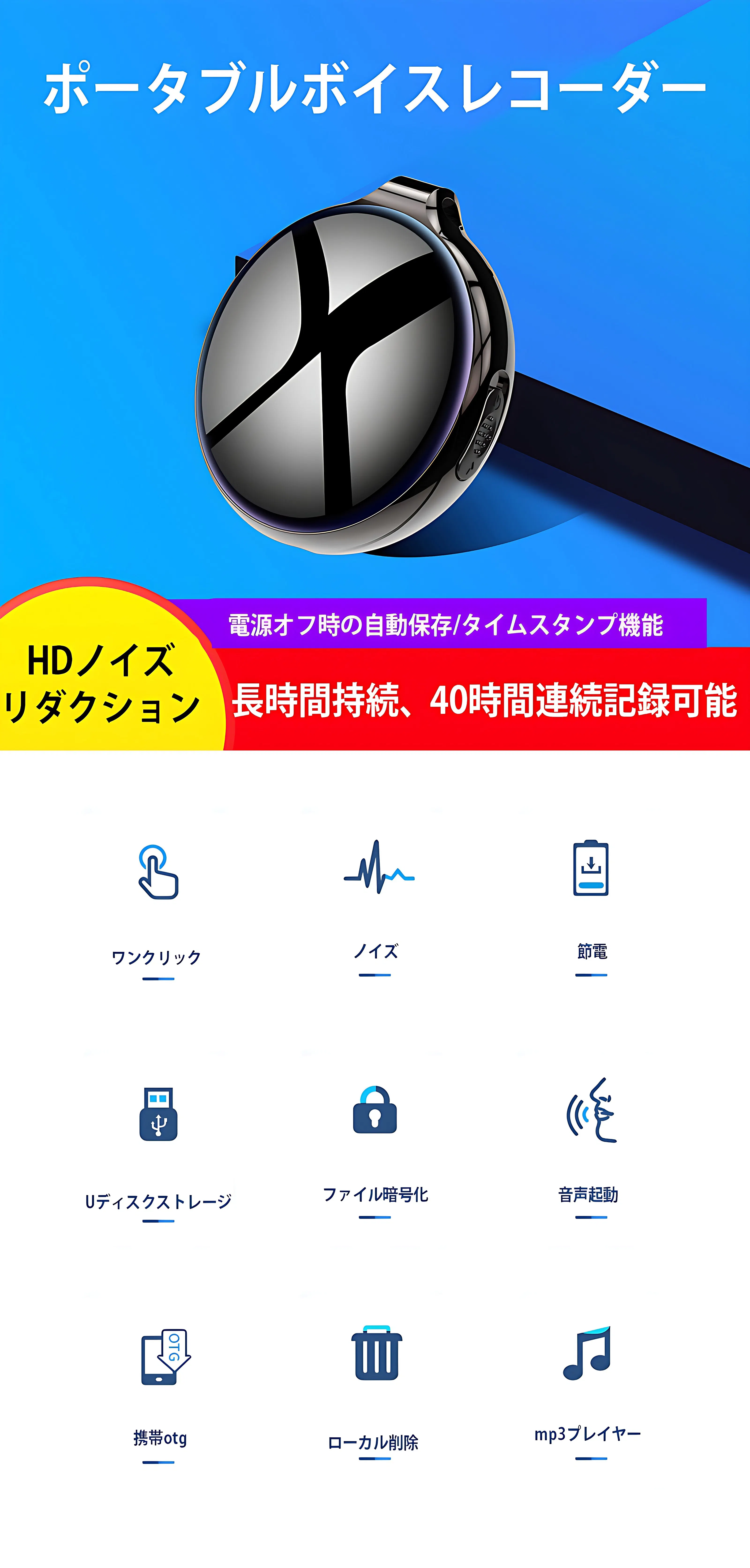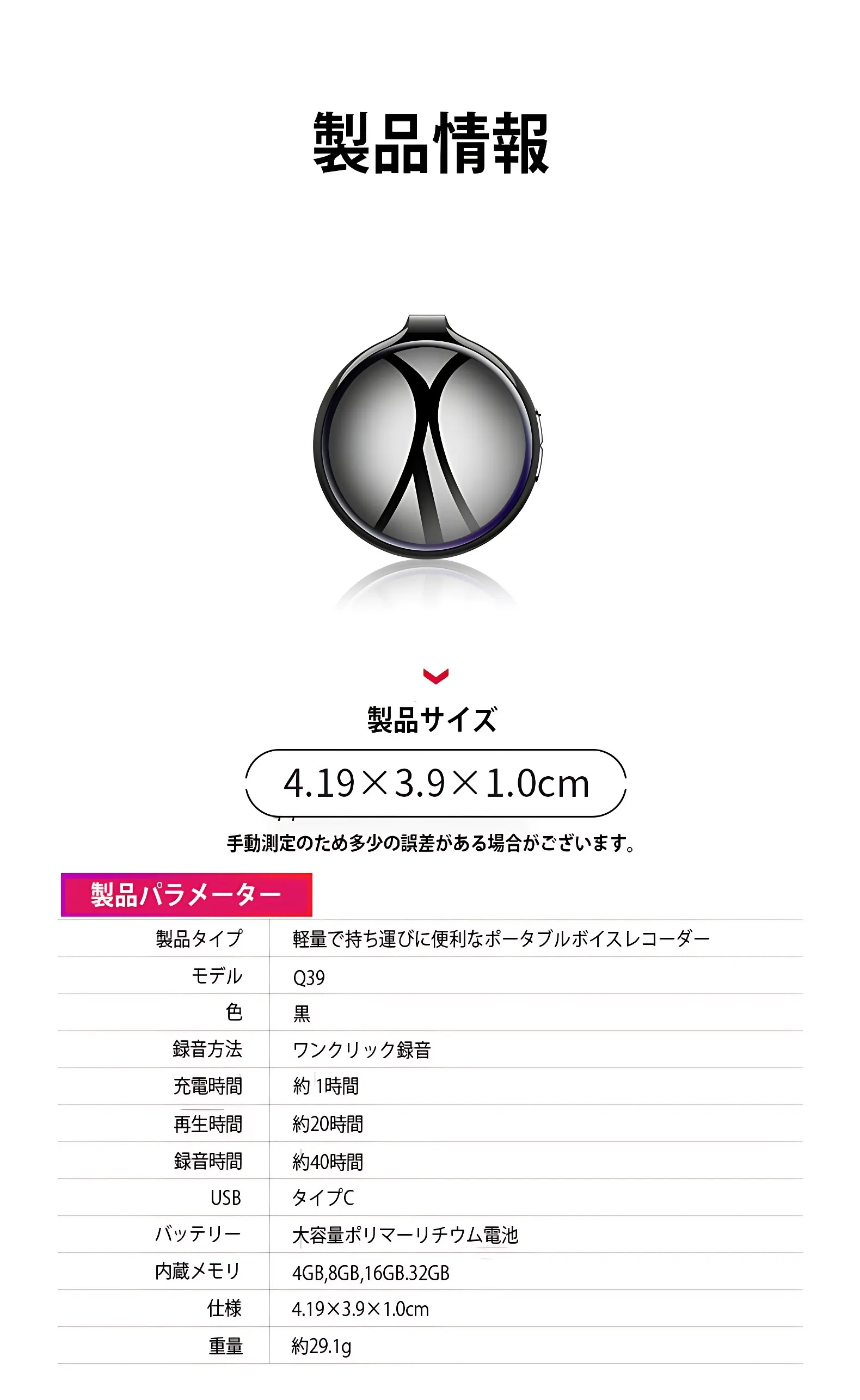 ポータブルボイスレコーダー「Q39」の特徴: