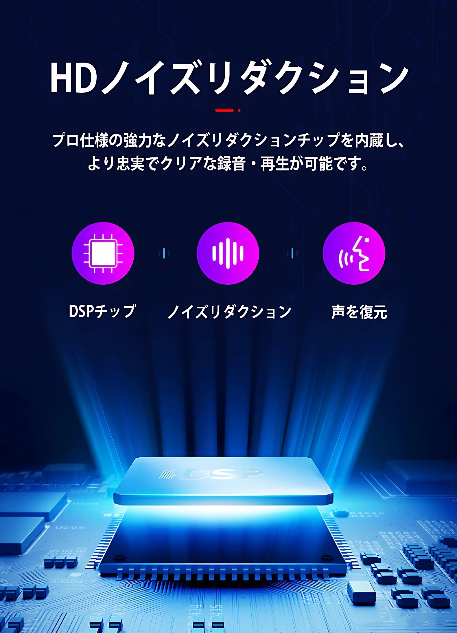 強力なノイズリダクションチップによりクリアな録音、再生が可能です。