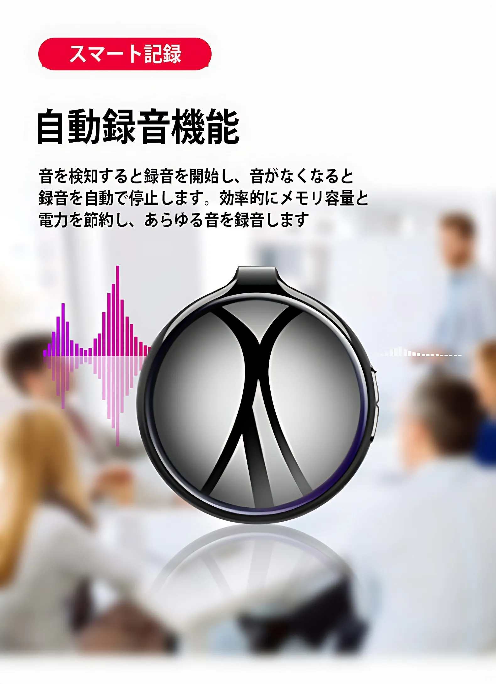 音声スマート認識機能により、音を検知すると自動で録音を開始し、音がなくなると録音を自動で停止します。