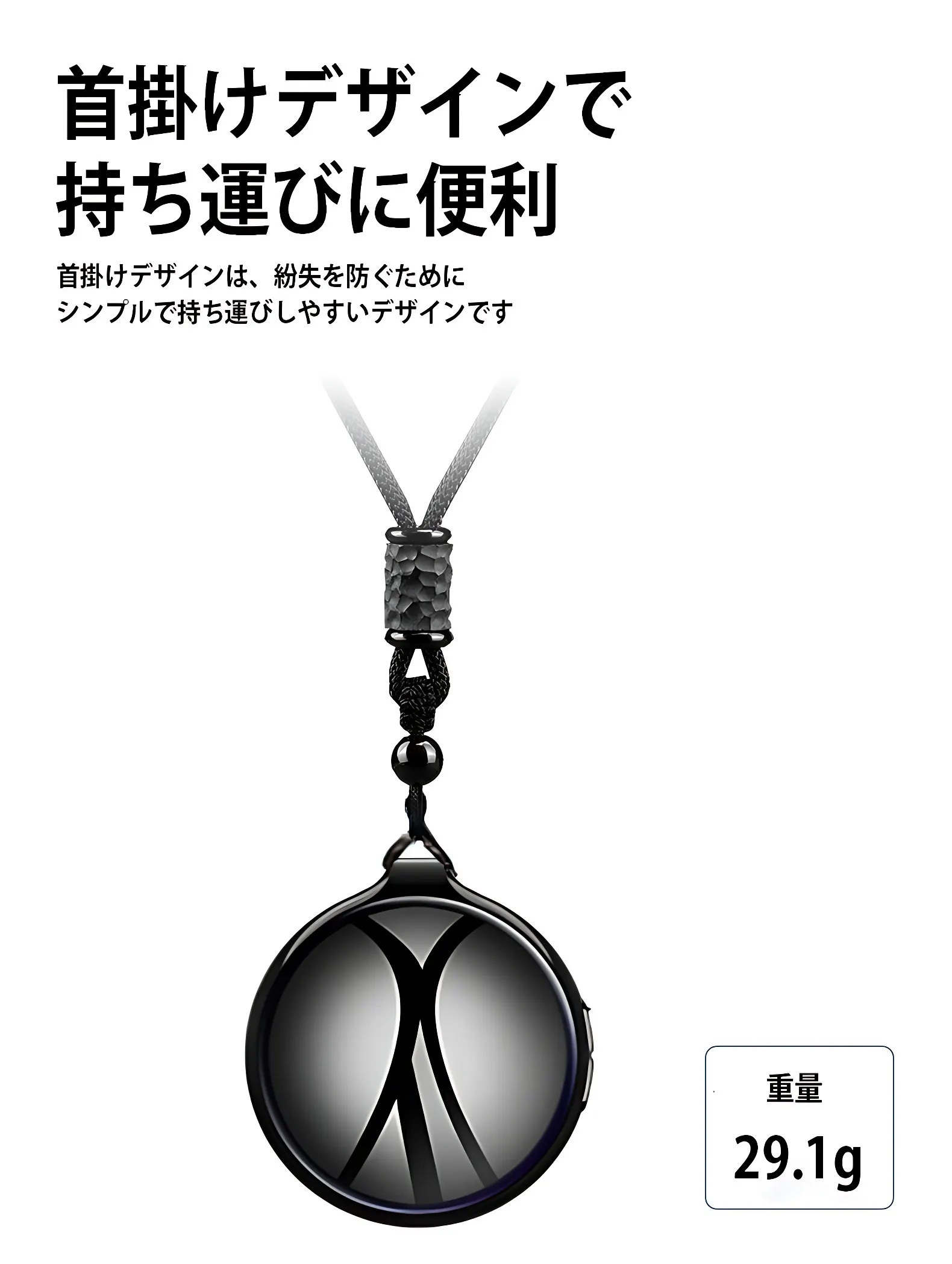首掛けデザインは紛失を防ぎシンプルで持ち運びやすいデザインです。