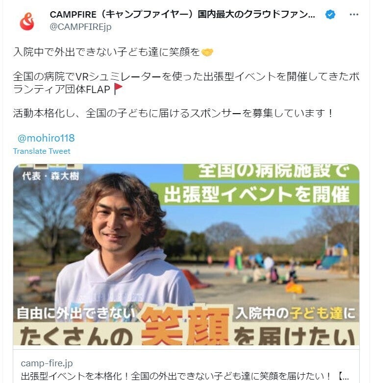 優れたプロジェクトを紹介する「クラウドファンディング名鑑」に掲載されました!≫ 掲載された「クラウドファンディング名鑑」のページを見るプロジェクトを簡潔にわかりやすくまとめてくださってます!ぜひページの方もご覧になってください!=== ☆お願い☆ ===拡散シェア、支援をお願いします!今回のプロジェクトは「All-or-Nothing方式」で挑戦しています。目標金額を達成できなければ支援を受けることができないのですが、閲覧数の伸び悩んでいる状態が続いてます。なんとしても目標を達成させたいと思っています。ぜひSNSでの拡散シェアで協力いただきたいです…!≫ このリンクを押すと「Facebook」でシェアできます≫ このリンクを押すと「Twitter」でツイートできます≫ このリンクを押すと「LINE」で友達に送ることができます森大樹