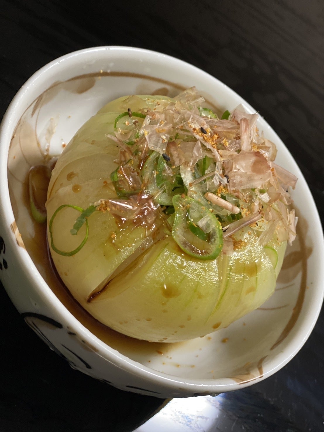 新玉ねぎでしか出来ないオニオンスライスもありますが、個人的に1番オススメなのが、切れ目を入れてレンジでチンするだけ!!