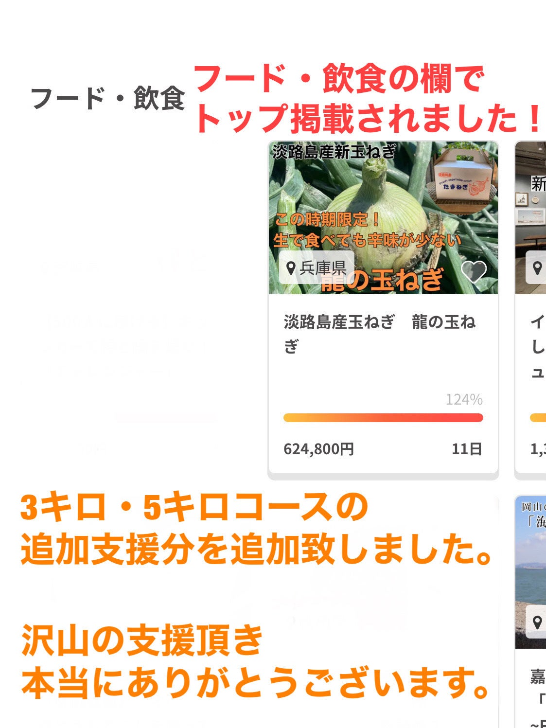 こんばんは!夜分遅くにすみません。やっと公開まで持っていけました!・限定公開URLhttps://camp-fire.jp/projects/681497/preview?token=2mfkzwdw&utm_campaign=cp_po_share_c_msg_mypage_projects_show・6月30日 12時からスタートです!購入時のURLhttps://camp-fire.jp/projects/view/681497?utm_campaign=cp_po_share_c_msg_mypage_projects_show↑3キロコース5キロコース10キロコース割安コース限定で出してます!無くなり次第終了です!今後ともよろしくお願いします。
