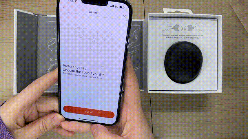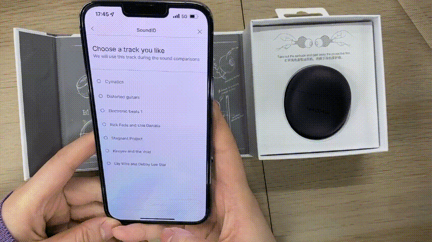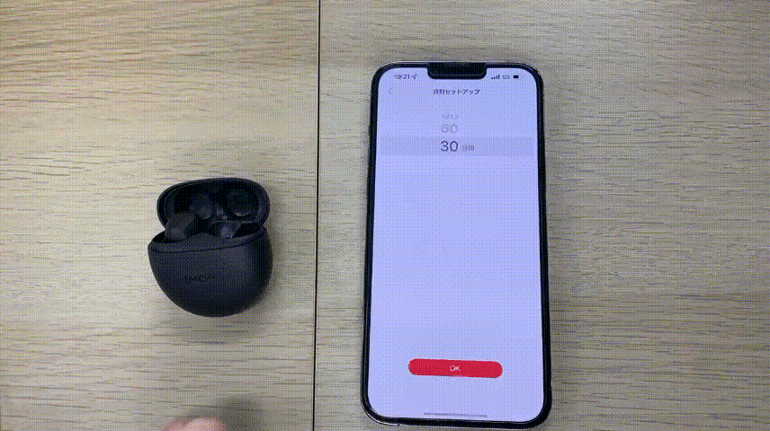 両耳をかけてから、音楽の設定を開始する