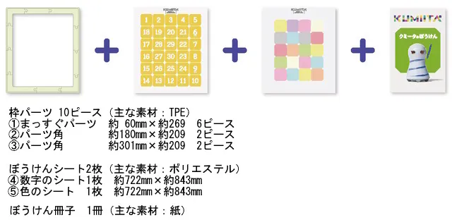 拡張パネルセットを使った「色の足し算を楽しむ」「動物と果物で引き算を楽しむ」「条件式を楽しむ」など、少しずつ高度な学びがおこなえるよう、沢山のノウハウを詰め込んだカリキュラム書「楽しむ冊子とキット」を絵柄や図を使い制作します。