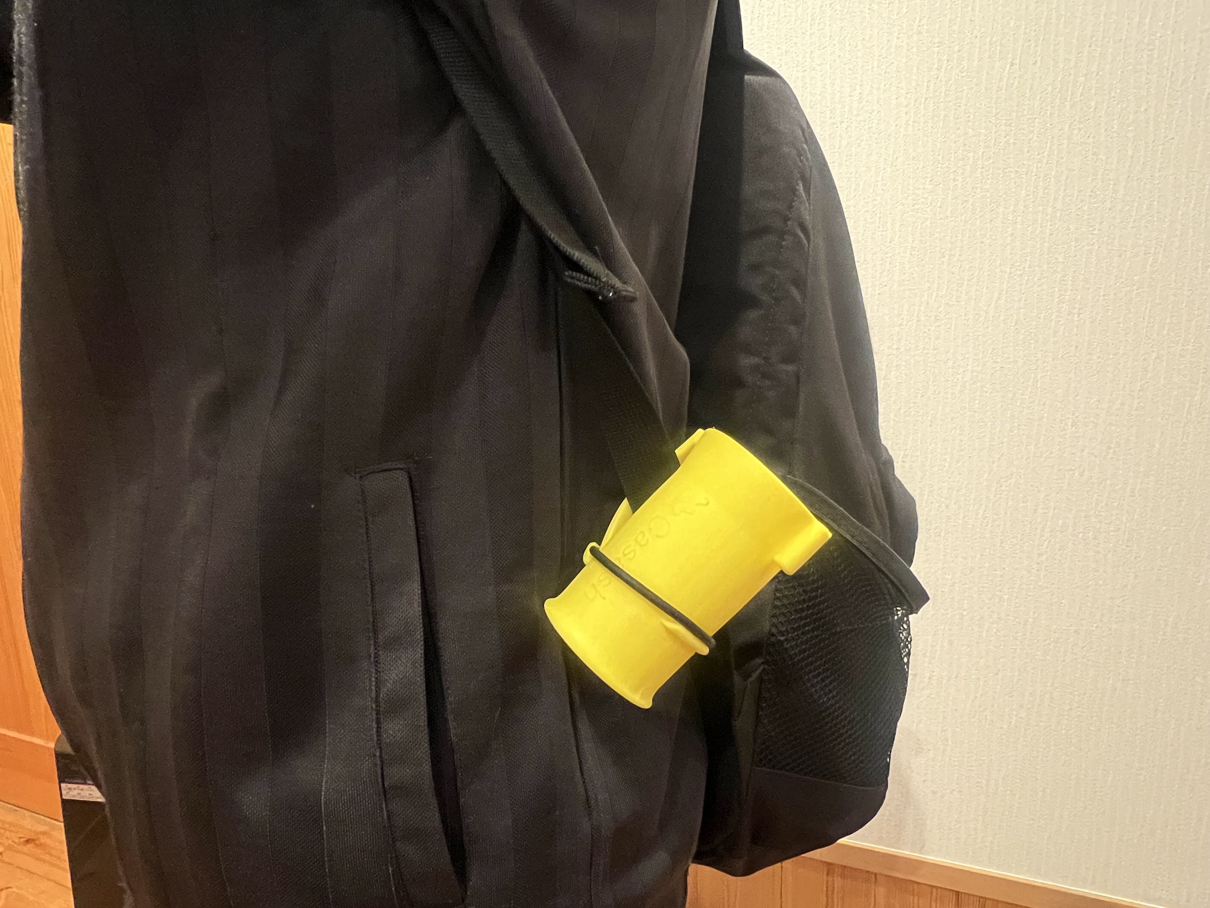 エラストマー素材で柔らかいため、リュック等に入れも邪魔になりません。