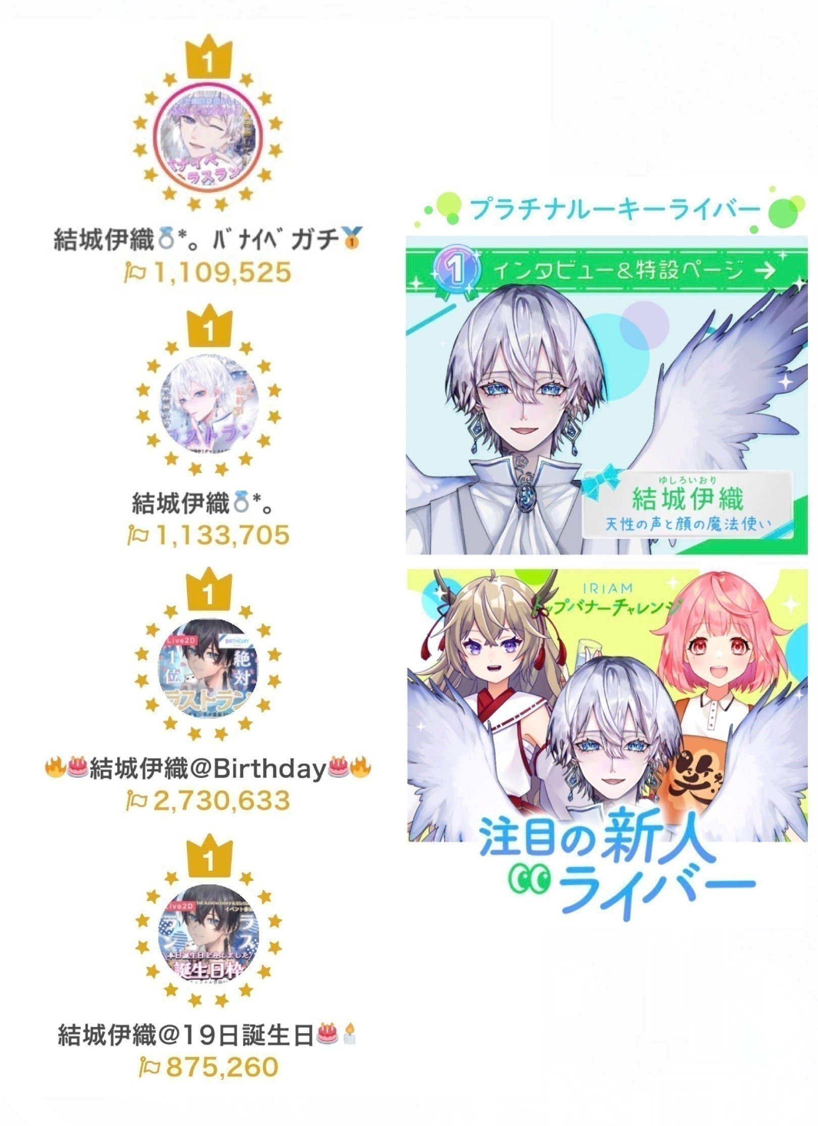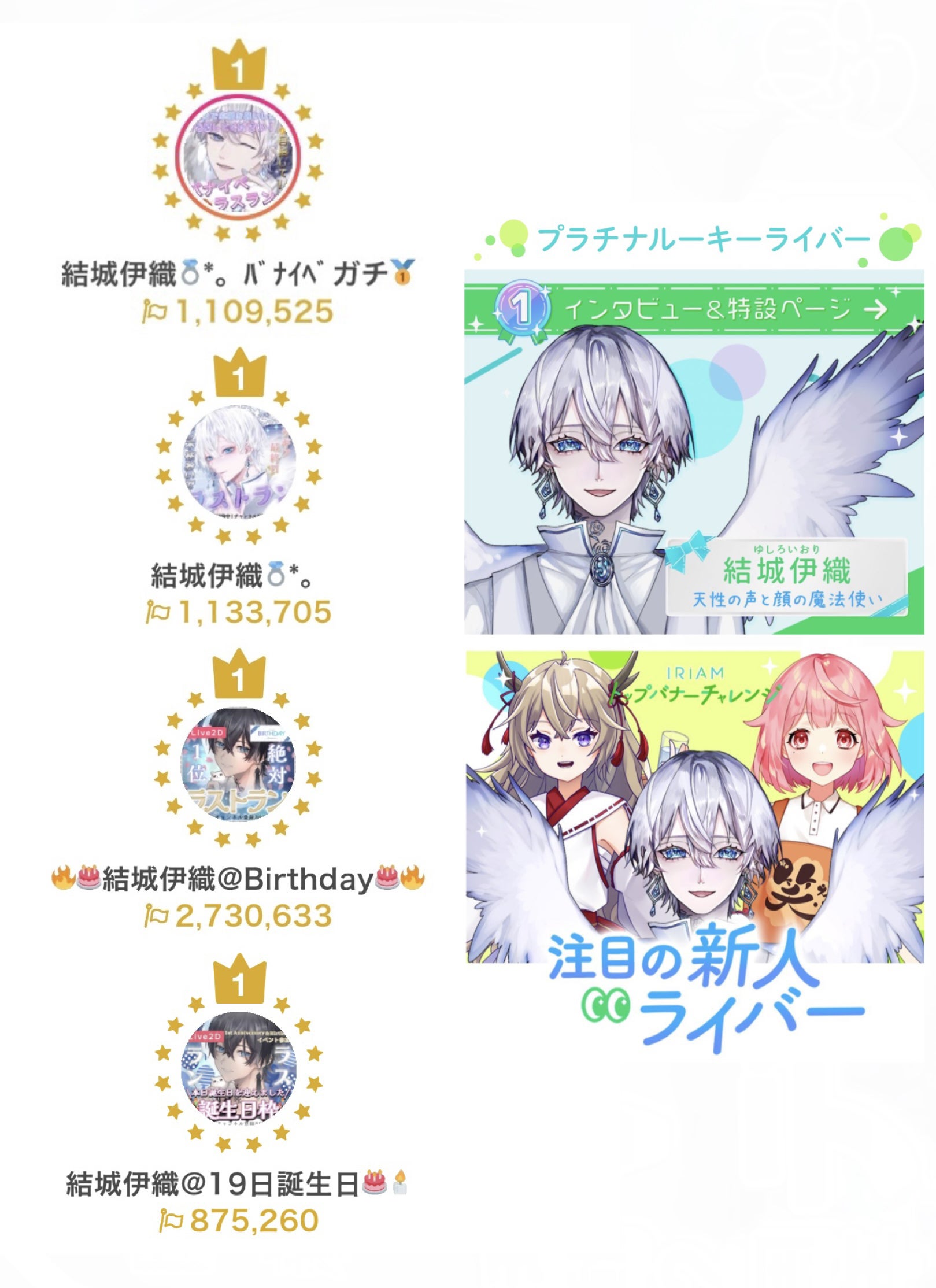 そして、IRIAMで配信活動を始めてから1か月後に約300人程の新人ライバーが参加するイベントで🥇位を獲得することができました。