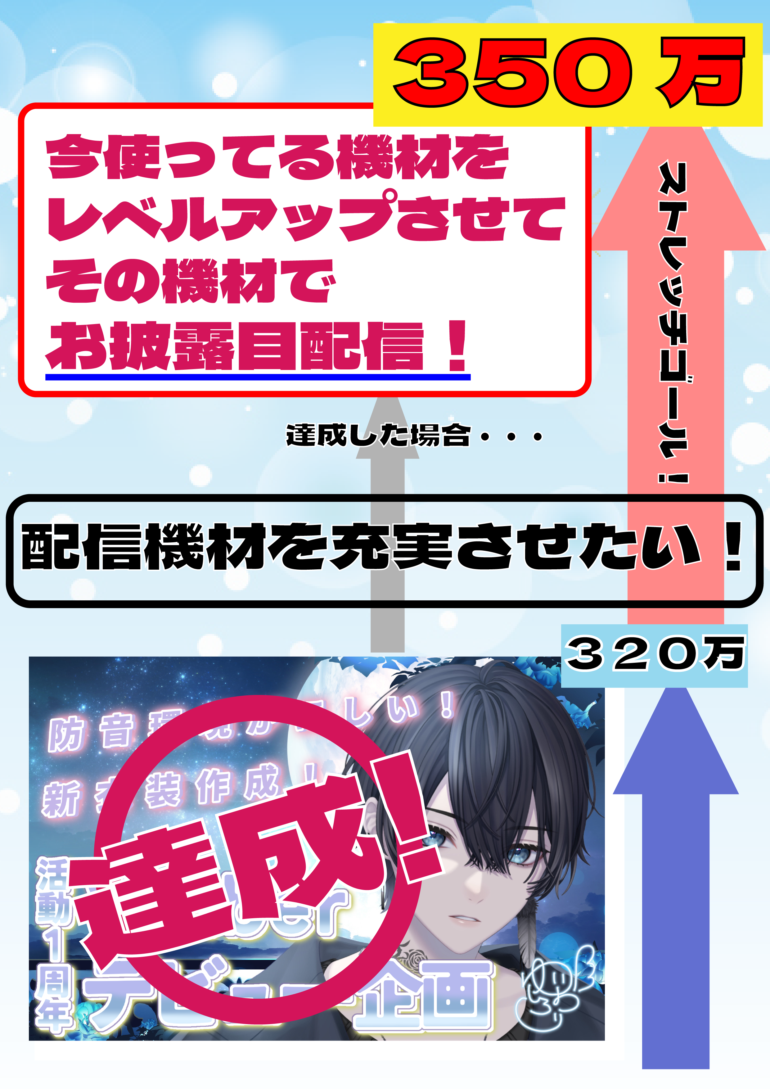 そしてオープニング動画の制作や配信背景の制作等その他様々な配信に必要なものを揃え、いずれはMVの制作をし歌ってみたを投稿したいと思ってます!