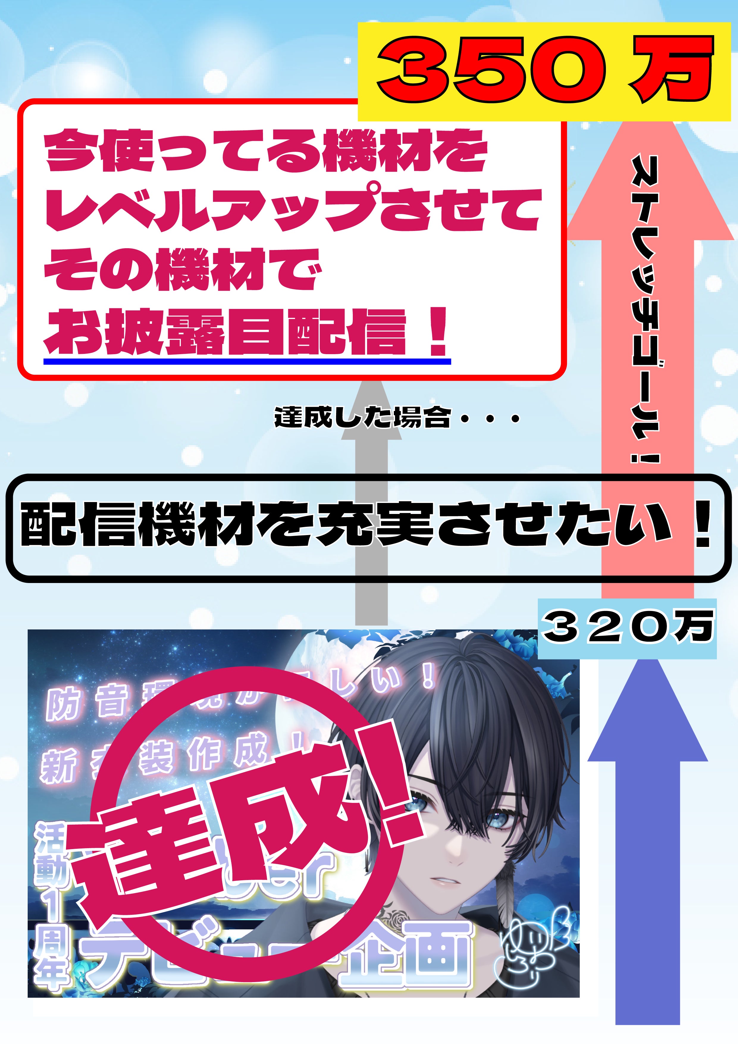 そしてオープニング動画の制作や配信背景の制作等その他様々な配信に必要なものを揃え、いずれはMVの制作をし歌ってみたを投稿したいと思ってます!