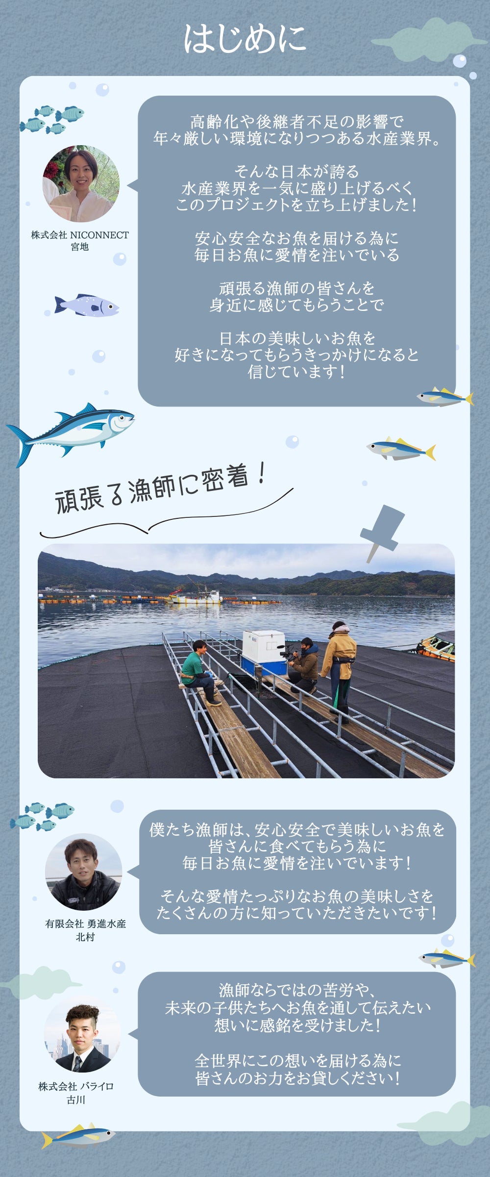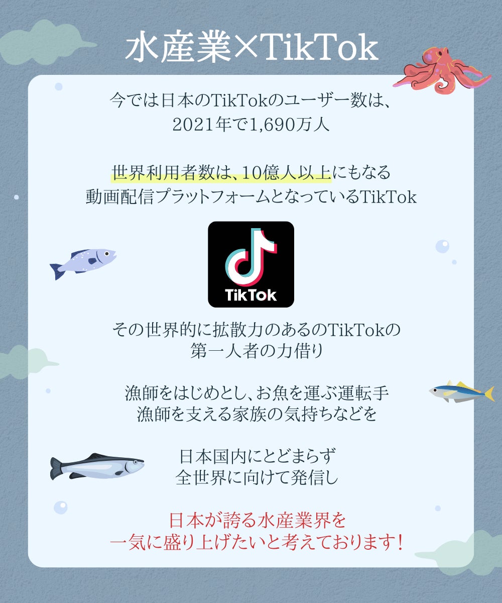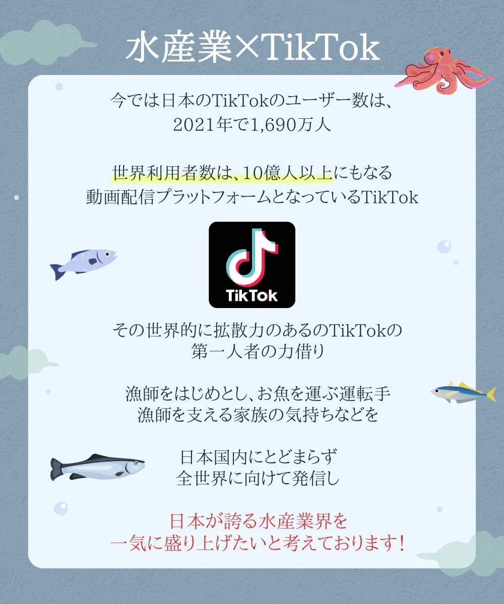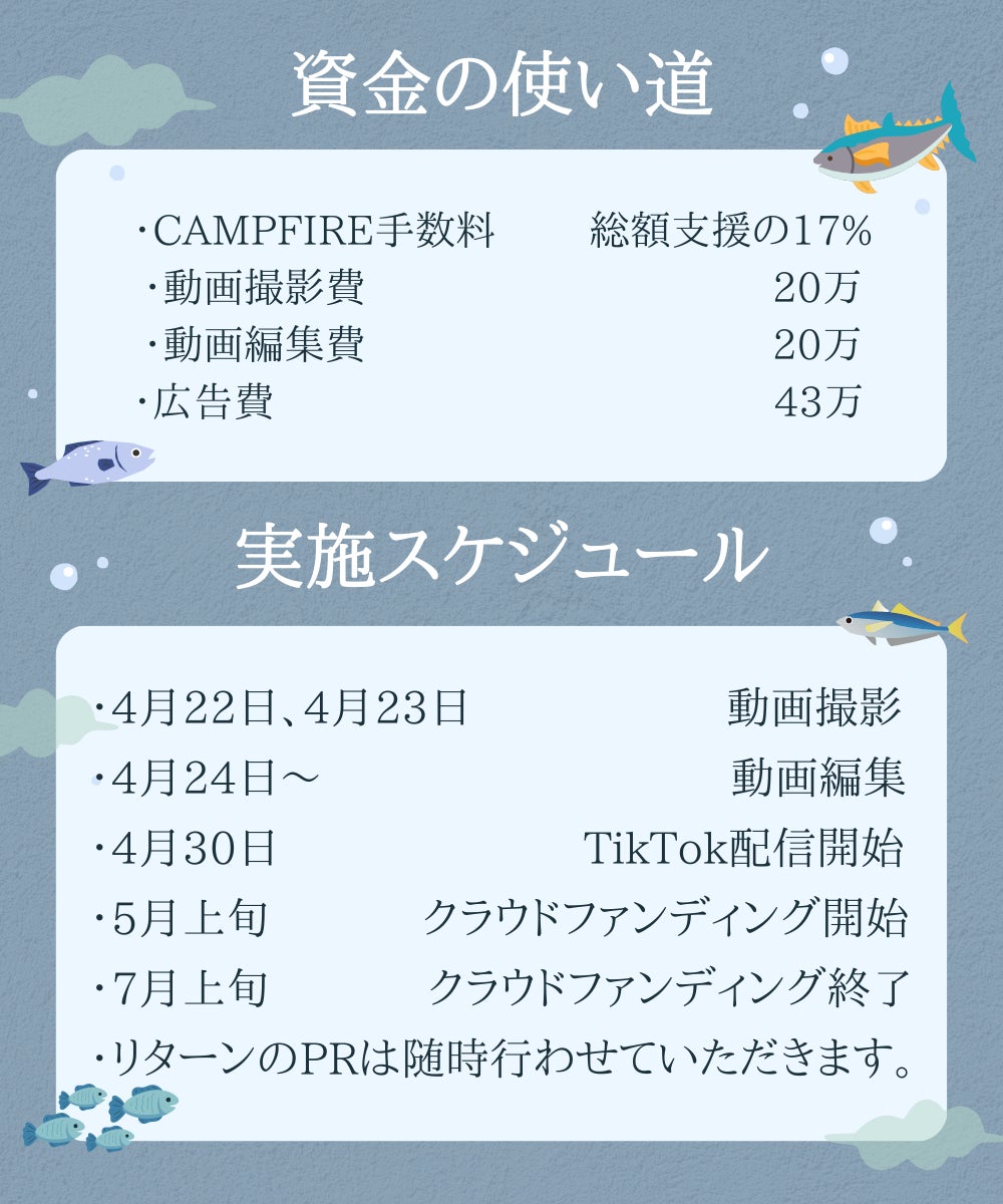 ご支援いただいた方の為に、おいしいお魚やTikTokを使った広告宣伝活動など