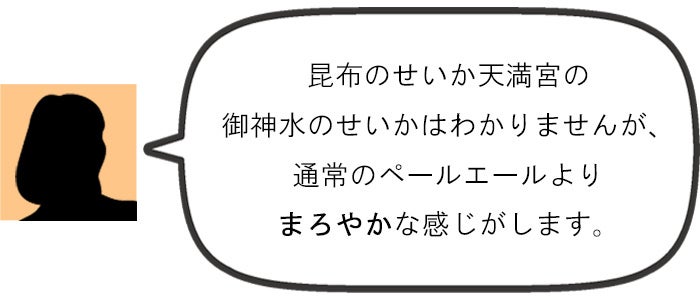 学問の神、菅原道真公を祀った大阪天満宮の御神水を使用している天満天神えーる、まろやかな味をぜひ楽しんでください!