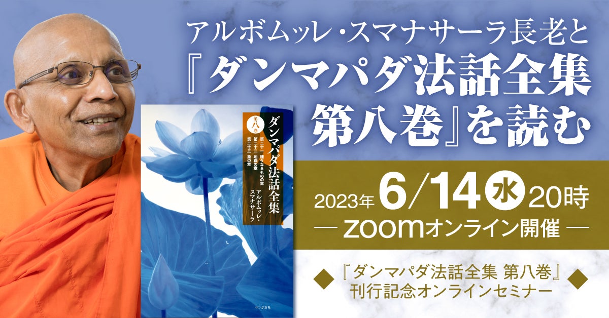 アルボムッレ・スマナサーラ長老による刊行記念オンラインセミナーを実施します。『ダンマパダ法話全集 第八巻』について、スマナサーラ長老からお話をきける貴重な機会です。ぜひ書籍のご購入と共にご参加ください。