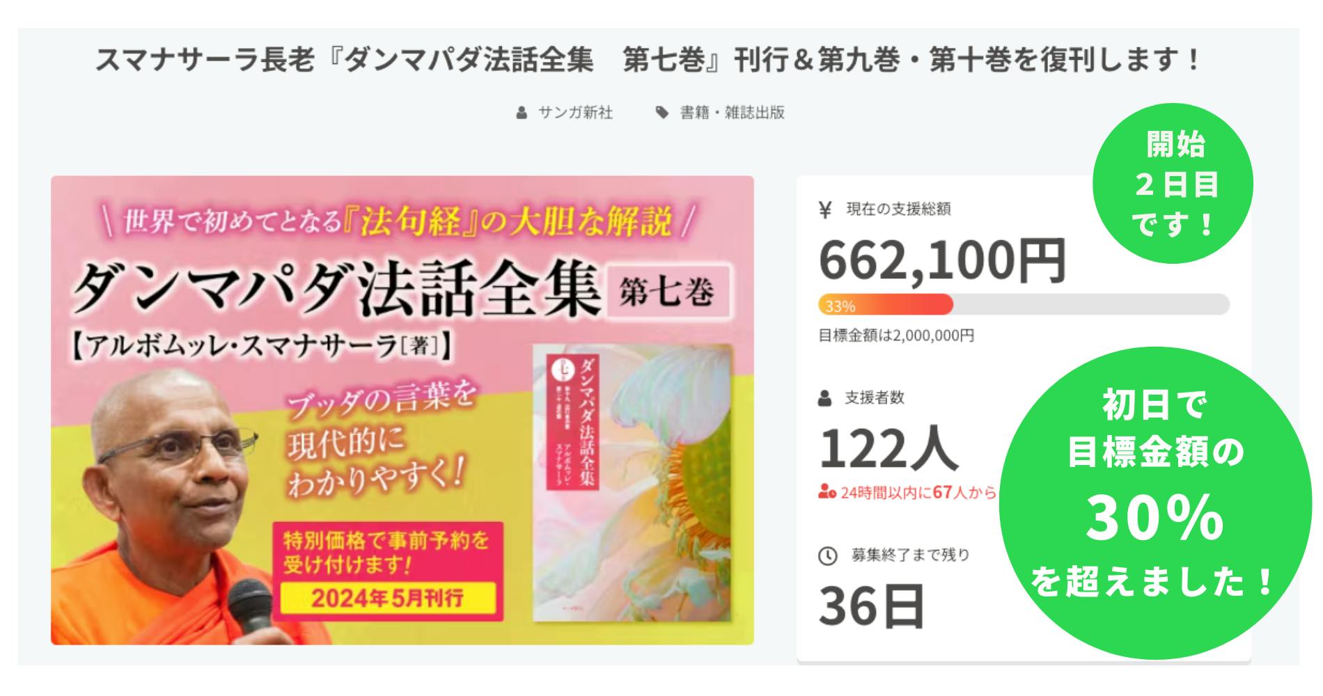 まだ『ダンマパダ法話全集』に出会っていない方や、このクラウドファンディングを知らない方がたくさんいると思いますので、引き続き多くの方々に事前予約の機会をお伝えしてきます。