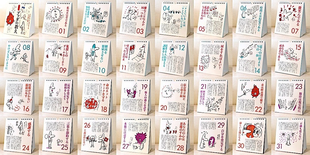 アルボムッレ・スマナサーラ長老のカレンダー『日めくり ブッダの教え[ワイド版]』(しりあがり寿 イラスト)と、書籍『一日一分 ブッダの教え 365』を、はじめて仏教に出会う方々への入門セットとしてお届けするクラウドファンディングです。