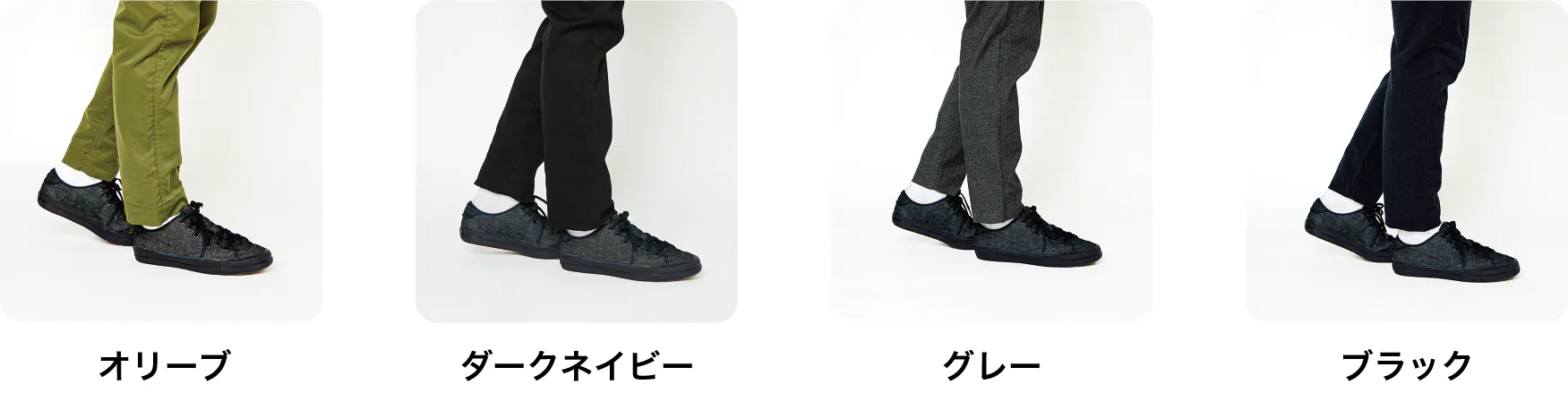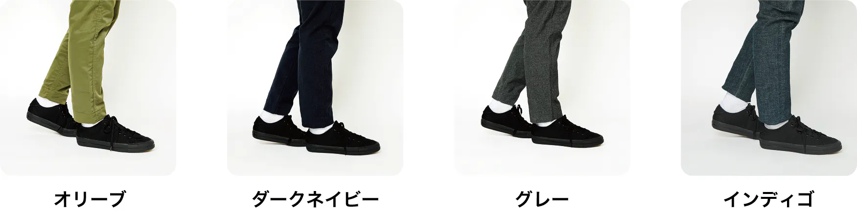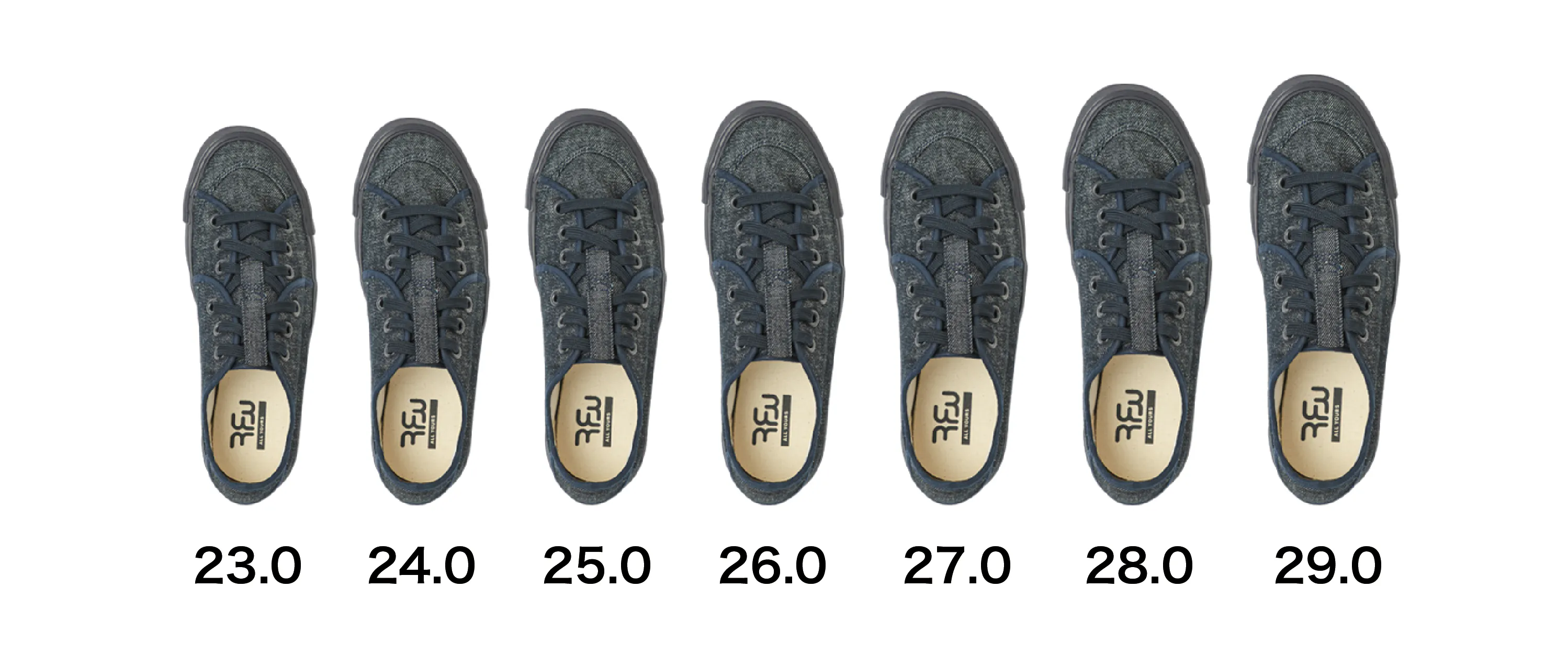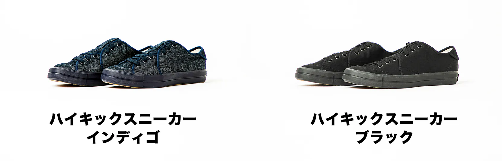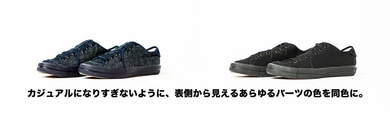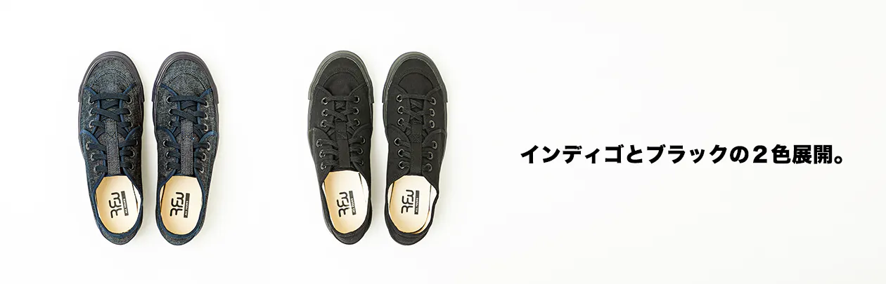 色はインディゴとブラックの2色。サイズは23.0㎝~29.0㎝の7サイズの中からお選びください。