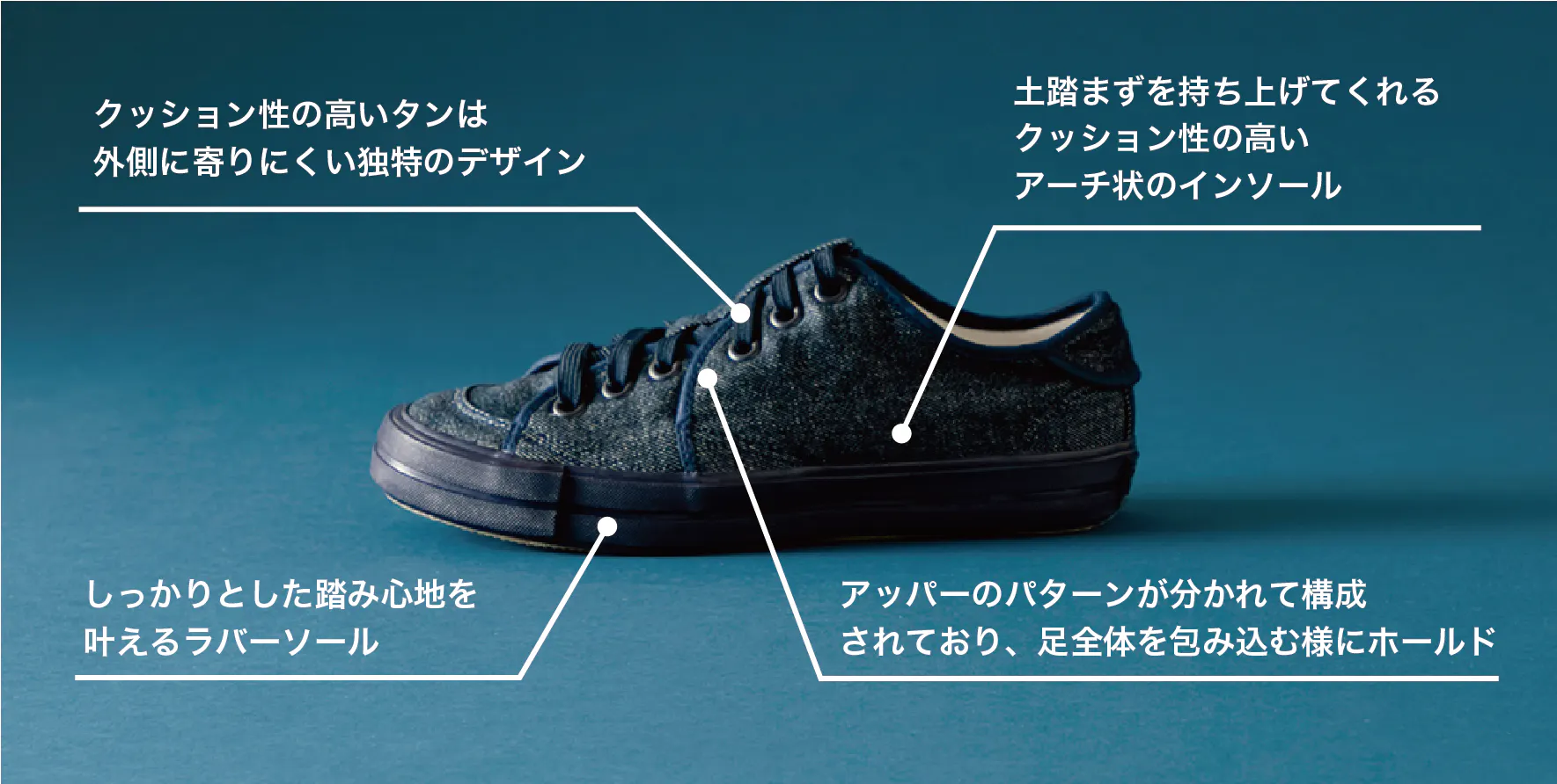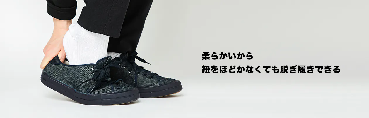 というスニーカー特有の課題を解決し、まるで、靴下のような柔らかい履き心地を実現してます。