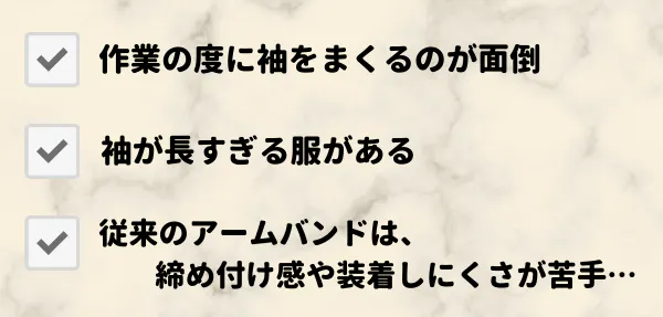 せっかく袖を上げたのに、落ちてきて作業が中断することはありません。