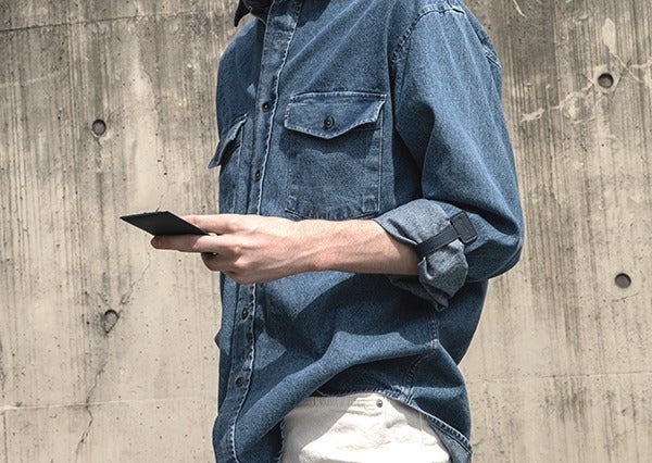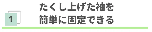 まくり上げた袖を簡単に固定できる、