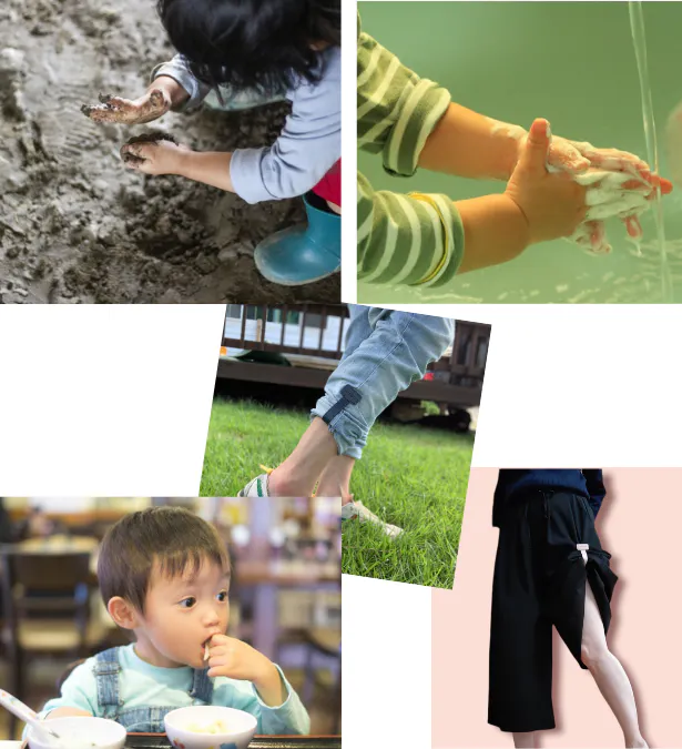 例えば公園で砂遊びをする、お子様の上着やズボンの裾を留めてあげたり。