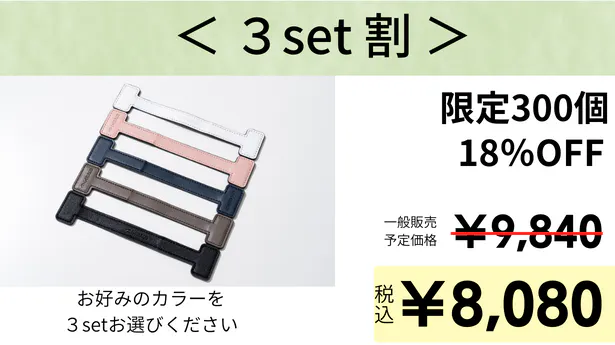 1~3セットでご用意しており、お好きなカラーを組み合わせていただけます。