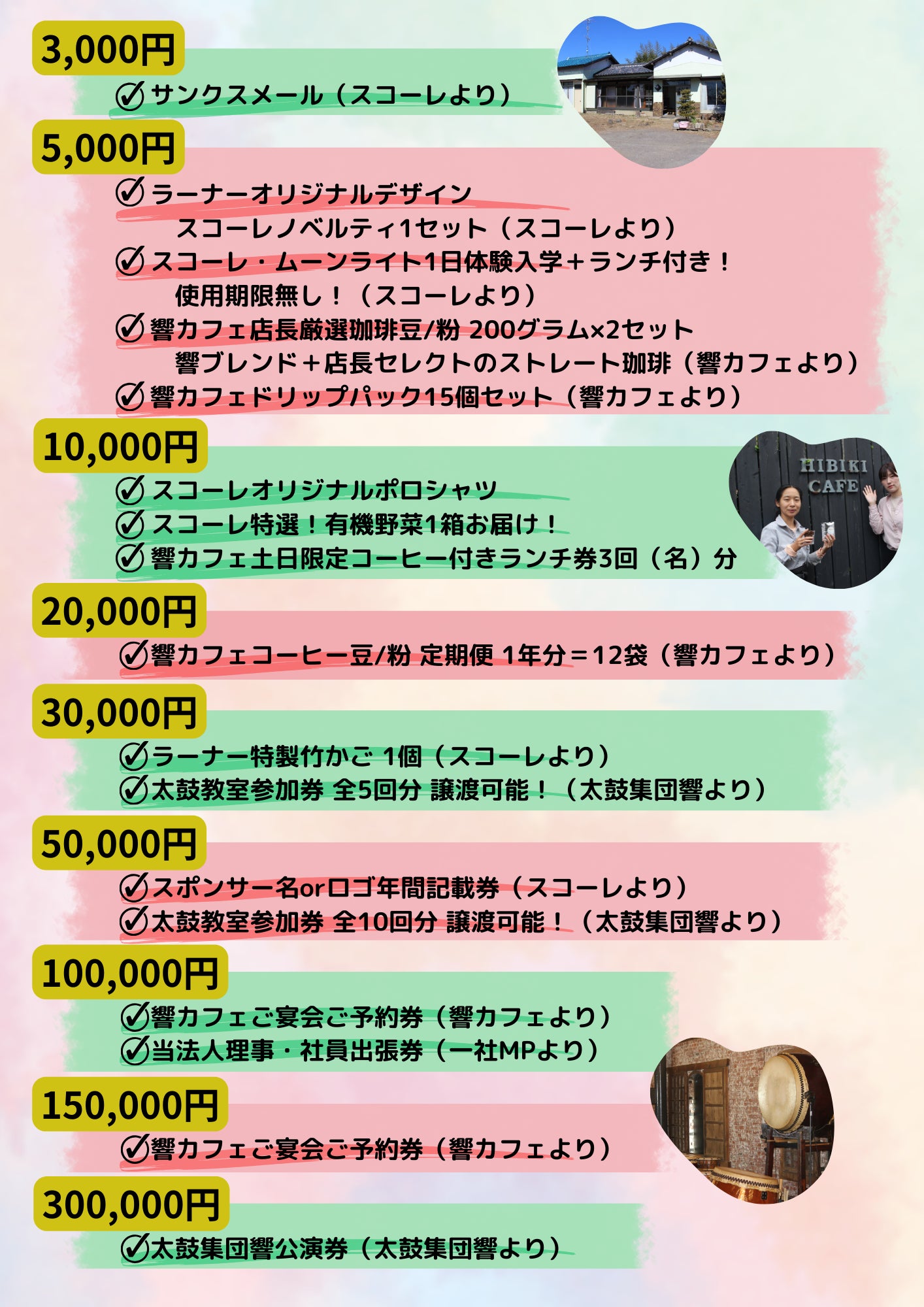 2024/07/03 13:55この度は、クラウドファンディング「フリースクール スコーレ・ムーンライトの心落ち着く居場所をつくりたい!」をご支援いただき、誠にありがとうございました。桜の季節に取り組みはじめ、早いもので、初夏を迎えました。総額1,435,000円のご寄付を、152名の方々からいただくことができました。皆様の温かいご支援とご協力の賜物です。70日間、お申し込みの手続き、SNSでの拡散・シェア、ページの閲覧、お知り合いへのご紹介・お声かけなど、お忙しい中、本当にたくさんのご尽力をいただきました。本プロジェクトに関わってくださったすべての方々に、この場をお借りして、心より感謝申し上げます。リターンについては随時発送を開始しております。お手元に到着するまでしばらくお待ちくださいませ!スコーレ・ムーンライト一同 もっと見る