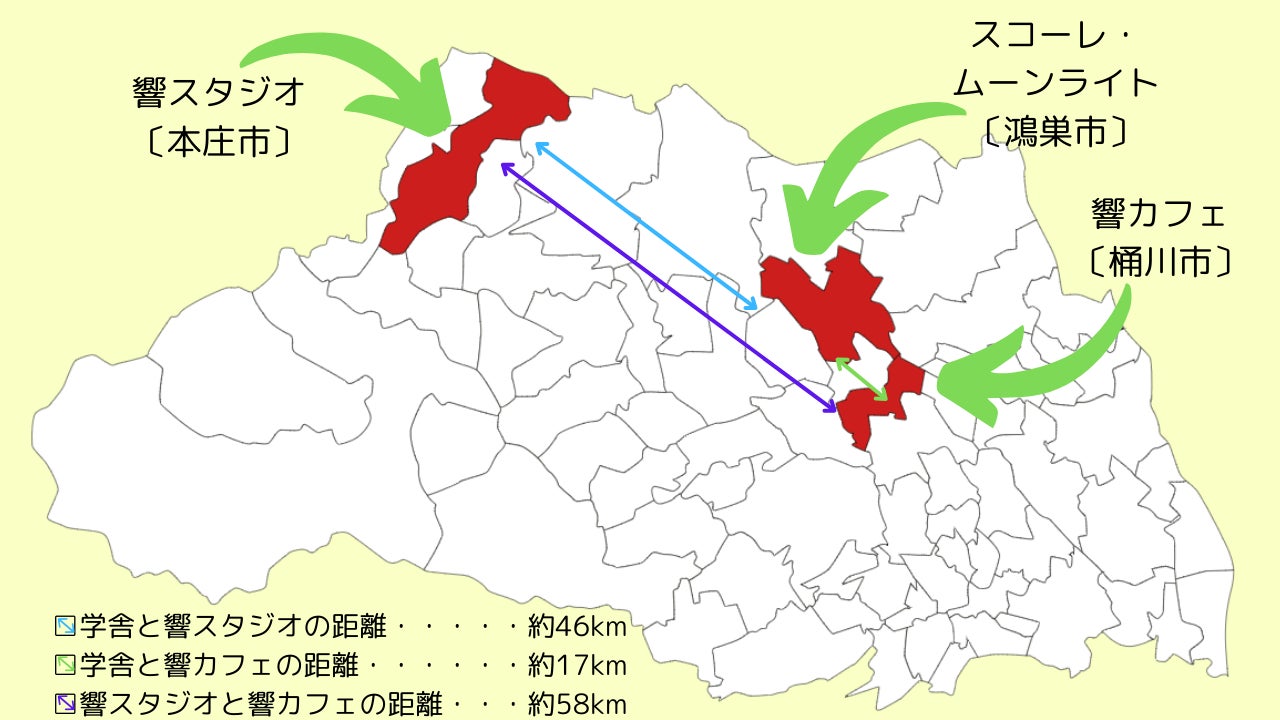当法人は2015年に立ち上がりました。法人化以前から、太鼓集団響とHIBIKI CAFEの活動が続けられてきました。太鼓集団響は、2013年より本庄市を拠点に構え、プロの太鼓集団として演奏活動や教室を運営してきました。HIBIKI CAFEは2014年に桶川市にグランドオープンし、店内では手焙煎の本格コーヒーが味わえるお店でありながら、就労支援や学習支援を進めてきました。一人ひとりが大切にされる世の中を目指し、組織的に社会問題や課題の解決を目指すことを念頭に置き、法人化を進めました。表現や文化、教育や享受を検証、検討することによって、理想の社会を探ってきました。そして2023年4月にフリースクールを開講するに至ったのです。各部門が連携し、子ども・青年たちの生き方を応援しています。